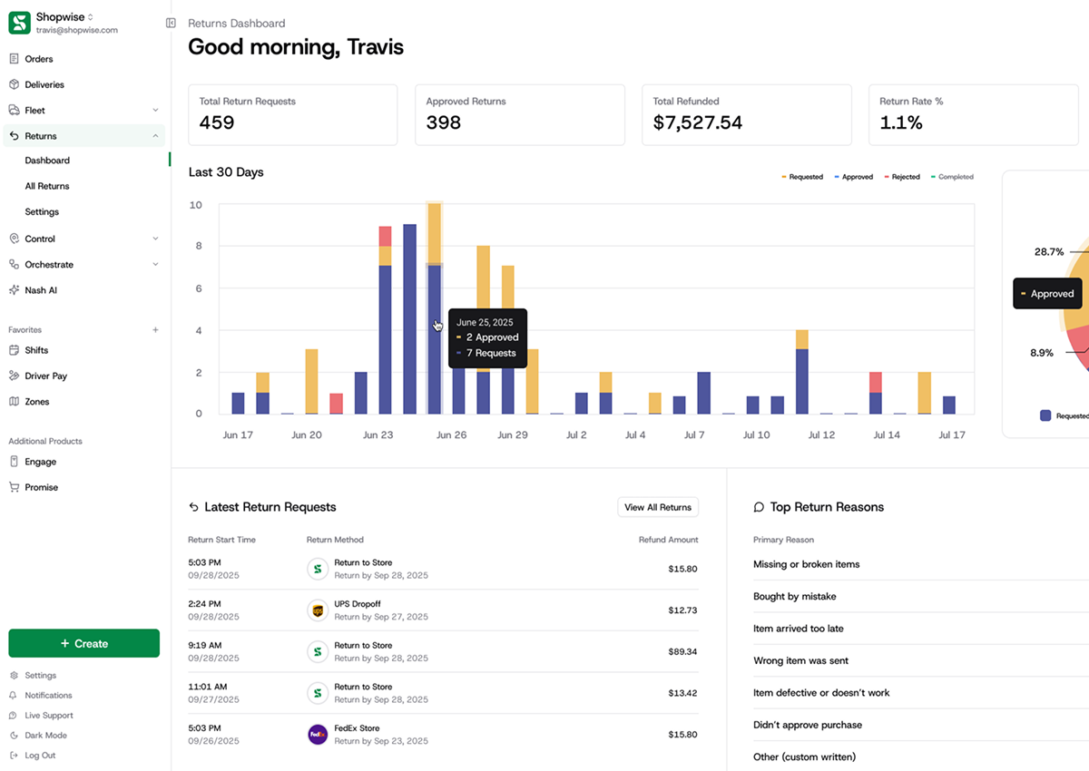 Nash is a last-mile logistics platform that helps businesses offer same-day and scheduled delivery through a nationwide driver network. As Principal Product Designer, I worked closely with product and engineering leadership to simplify complex logistics workflows, streamline automation, and create more intuitive tools for merchants managing deliveries at scale.